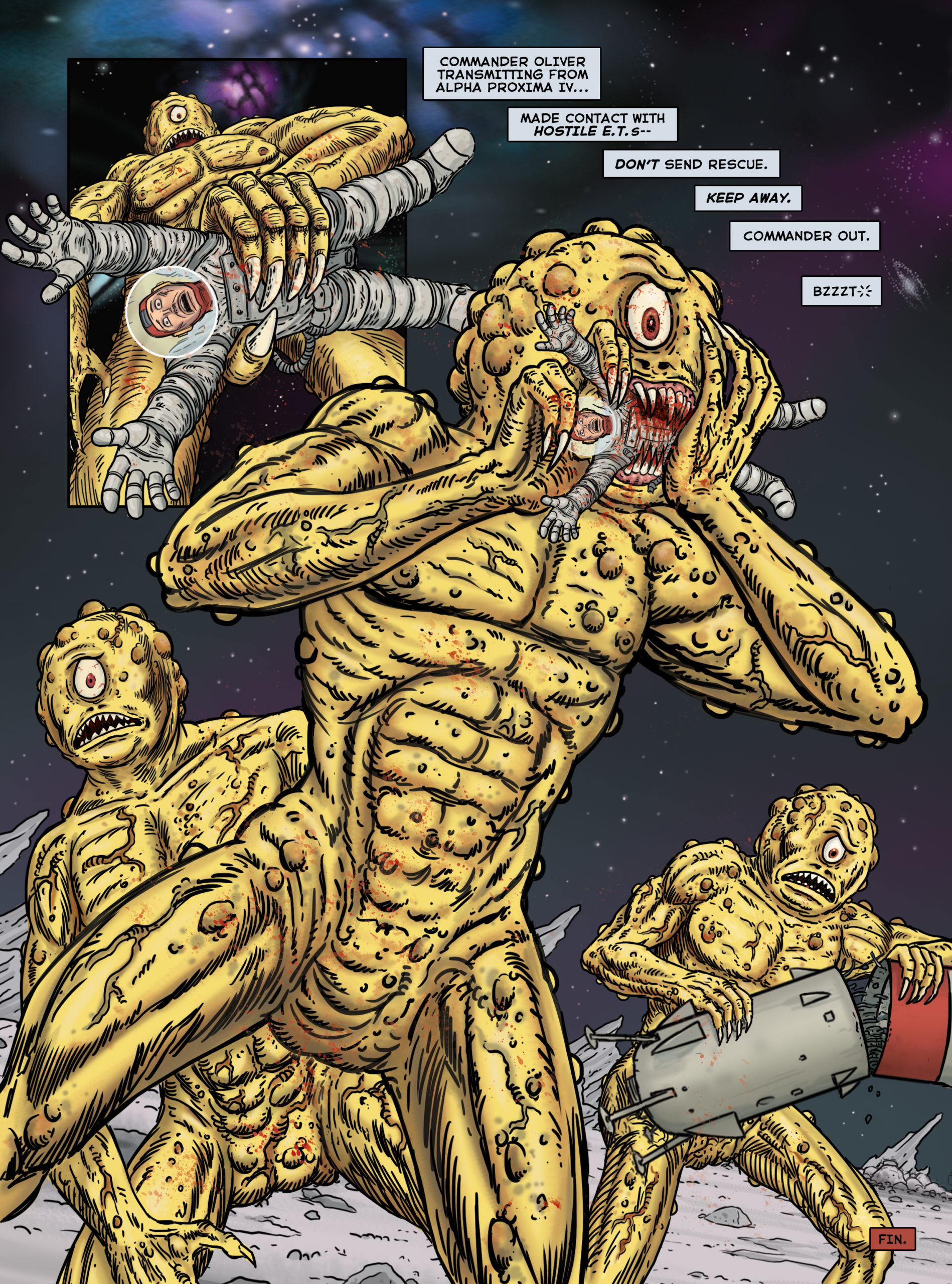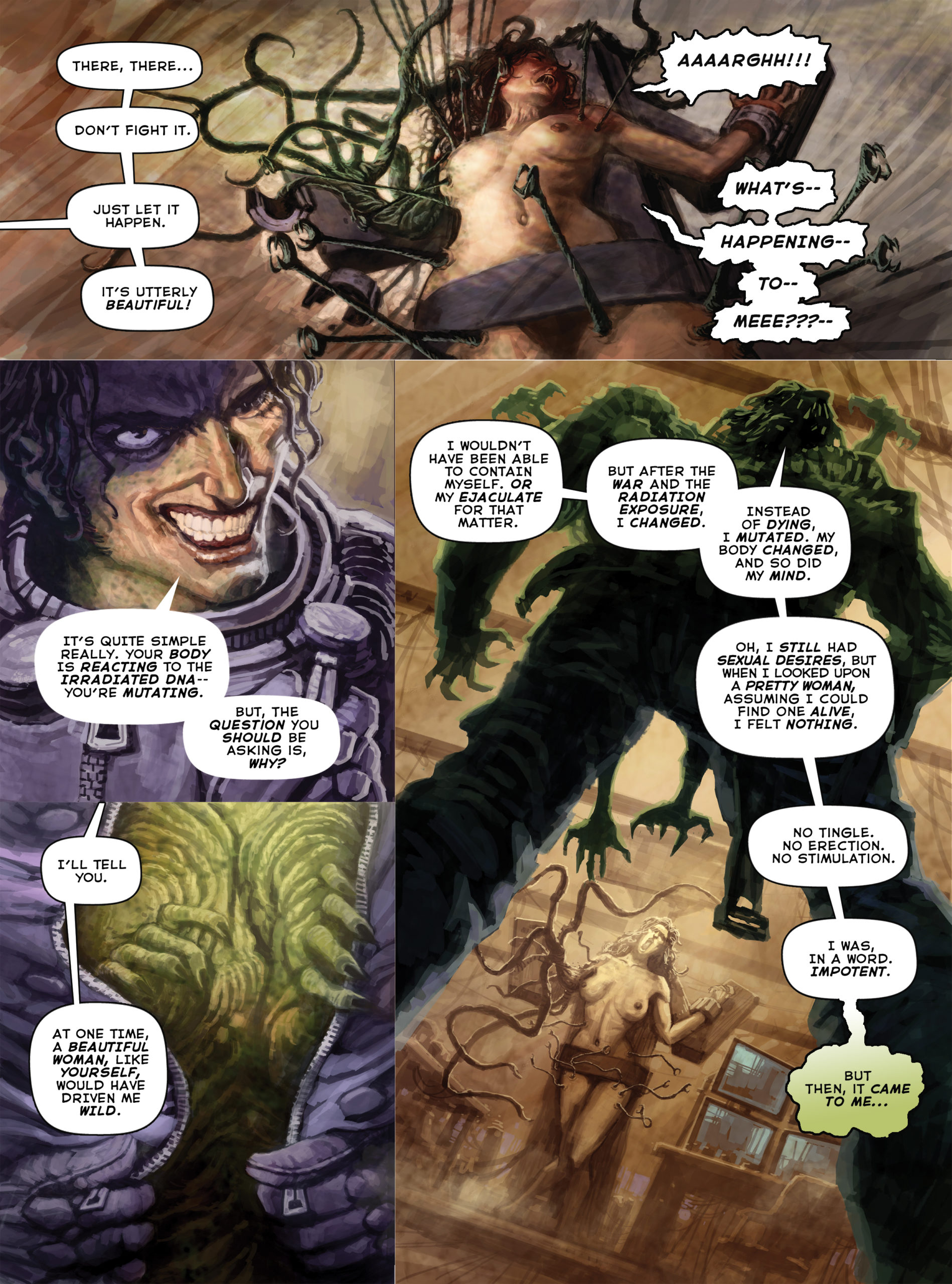 Beyond Doomsday is the new Illustrated comic book of fantasy, horror ans Science Fiction. This issue features five twisted tales of post armageddon terror. “The Transaction” (by frank Forte and Silvester Song) takes us on a dirty deal gone bad in the darkest regions of space. “Battlefield X” (by Frank Forte) brings us on the front lines of a bio-chemical war. “Mutation”(by Frank Forte and J.C. Wong) delivers a tale os post-nuke mutations and sexual deviancy which can only have disastrous results. Other tales incliude “Incident at Alpha Proxima” and “Short Circuit”